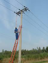 Logo depois, a energia está em muito alta tensão e é distribuída através dos populares postes trifásicos comuns em nossas ruas